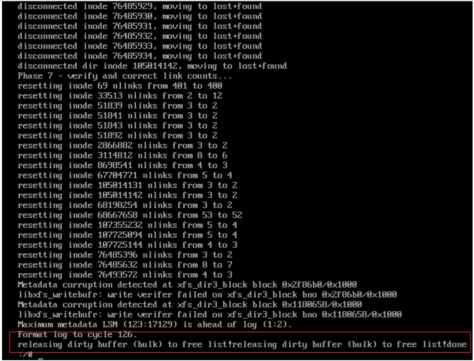 第二步:输入 xfs_repair /dev/mapper/centos-root -L