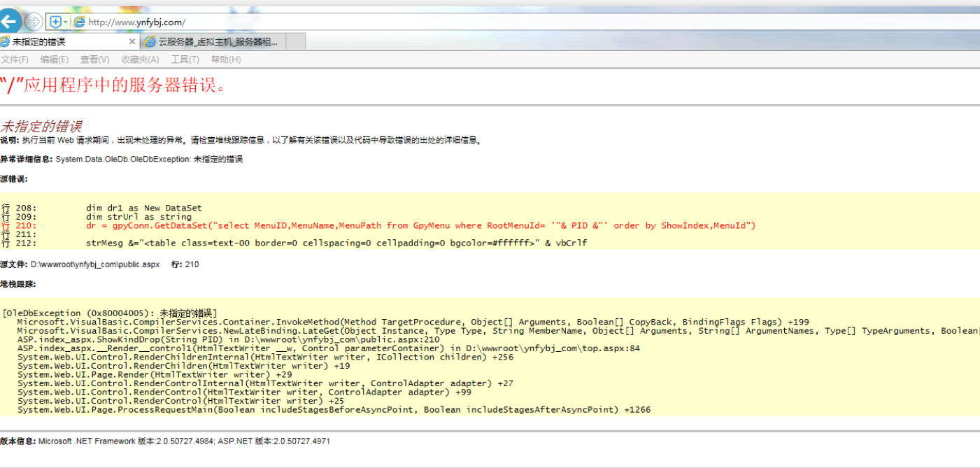 异常详细信息: System.Data.OleDb.OleDbException: 未指定的错误