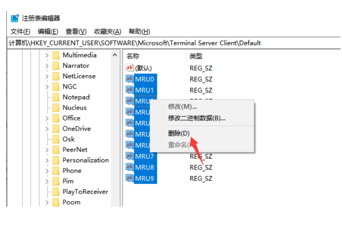 3.?右边的即为登录记录 选中删除即可 注意看清路径是否正确再进行删除!